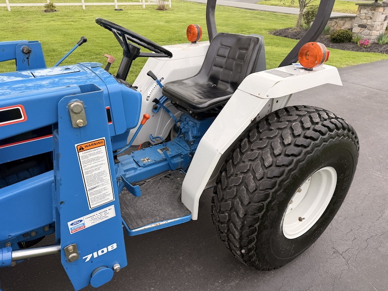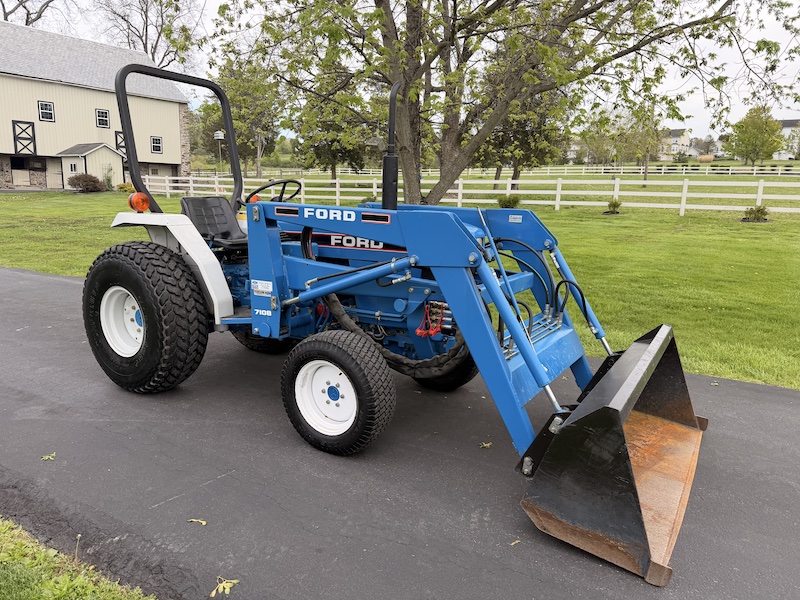 Ford 7108 Front Loader, Single Lever Control, 60" Wide Bucket, 900 Pound Lift Capacity @ Pin, 2214 Pound Breakout Force