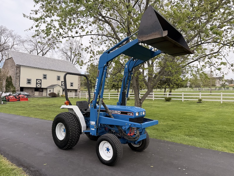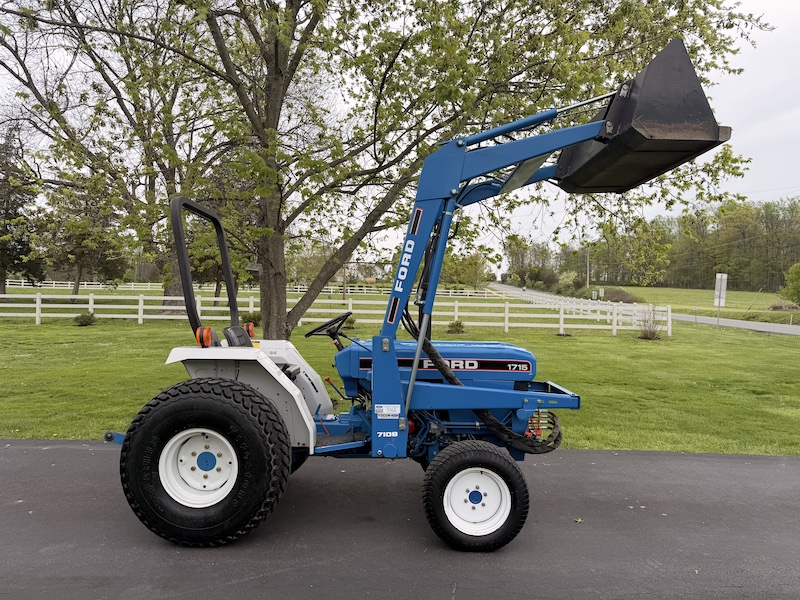 Extremely nice condition Ford 1715 tractor. Tough to find one that looks like this anymore. Extremely well cared for and maintained regularly. Serviced and ready to go to work. Tractor starts, runs, and operates 100%, NO mechanical issues, clutch works, gears shift smoothly, no transmission noise. Haven't seen any leaks. This is a standard duty mid size compact tractor. They don't build them like this anymore! Cast iron housings and all metal hood and fenders. Super easy to maintain and extremely reliable. Not much to go wrong on these tractors. With a little regular maintenance they just keep running. Great tractor for a homeowner or small horse farm that needs to maintain a few acres.