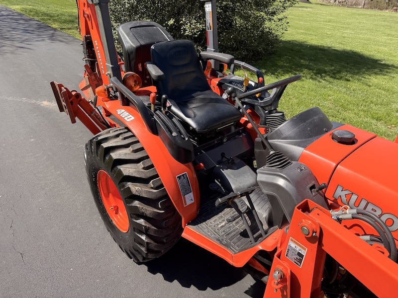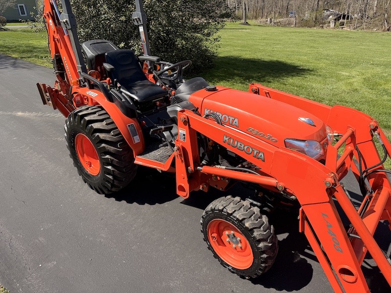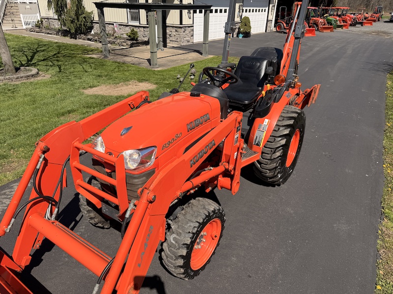 Sharp little Kubota B3030 TLB package. Extremely capable and tough machine. Not like the subcompact BX's that are so common. This is a big step up in quality and capability. Fully serviced and ready to go to work. Starts runs and operates 100%, No leaks that I've seen. Extremely nice to have a tractor with a three range hydrostatic transmission, much better speed and power match compared to other two ranges. very nice original condition, paint still shines nicely and no cosmetic flaws. Just an all around great little machine.