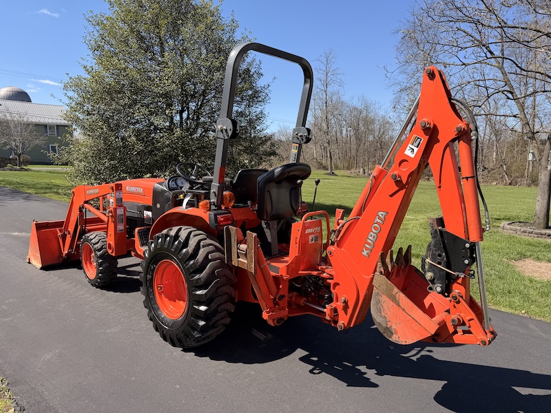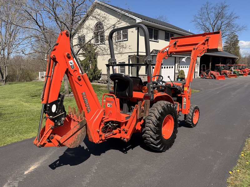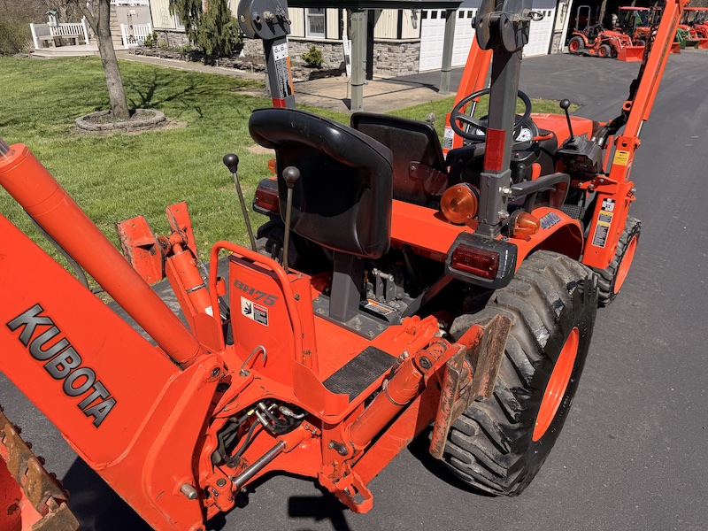 Kubota BH76 Backhoe, Subframe Quick Attach/Detach Mount, Clamp On Thumb Accessory, Flip Over Stabilizer Pads, 16" Wide Bucket, 7.5 Foot Digging Depth