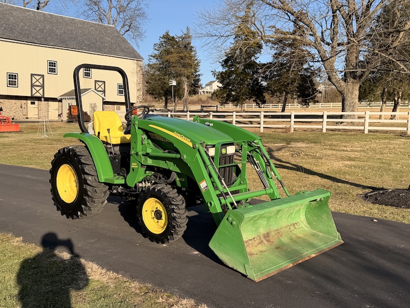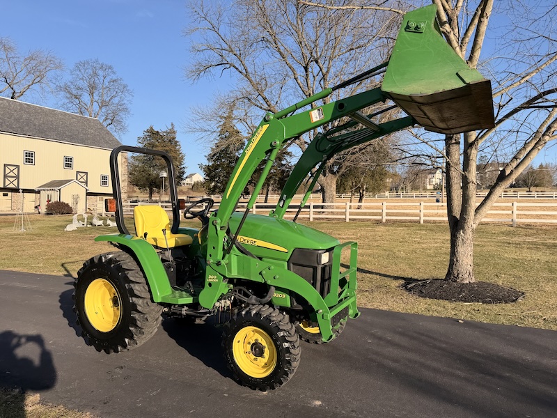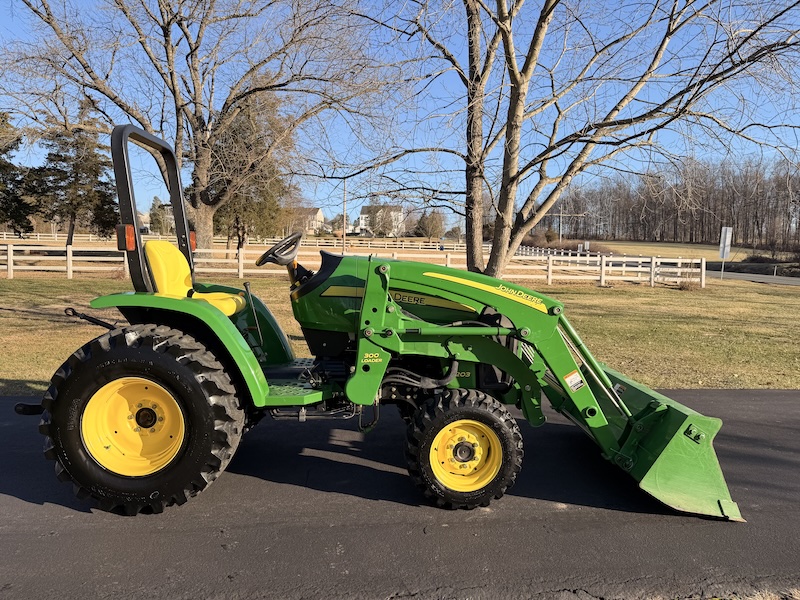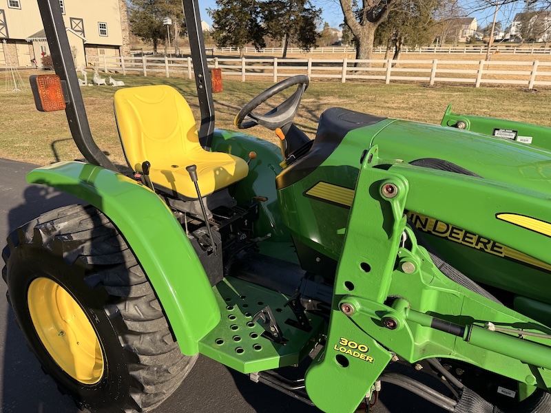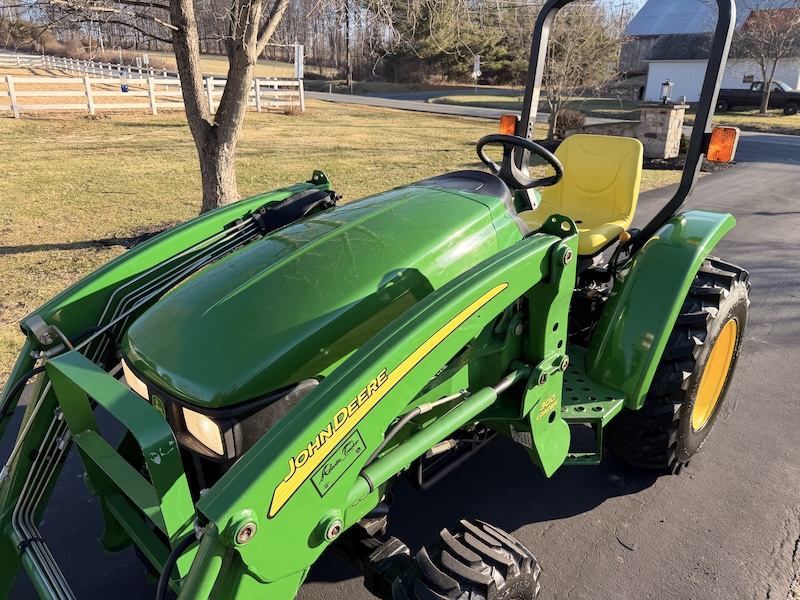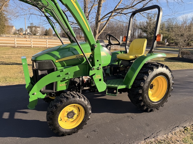 Excellent condition John Deere 3203 tractor loader package. Starts, runs, and operates without any issues. Freshly serviced and ready to work. Very low hours and minimal use on this tractor. One owner machine, all original condition, well maintained and cared for. All original paint, hood and fenders are in perfect shape. Tough to find a pre-emission. mid size compact tractor like this anymore. Compare to a new John Deere 3032e or Kubota L3302 that would be over $26k new nowadays and you'd have the extra hassle of emissions. These low hour pre-emissions tractors are better than a new machine and will likely be running long after a new one you buy today. If you're looking for a nice mid-size compact tractor to get some jobs done and maintain your property; this is a great machine for you.