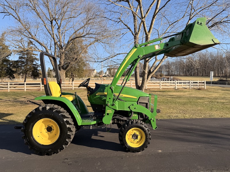 John Deere 300 Loader, Quick Park Frame Mount, Single Lever Control, 61" Wide Front Bucket, John Deere Style Quick Attach, 740 Pound Lift Capacity @ Pin, 1728 Pound Breakout Capacity