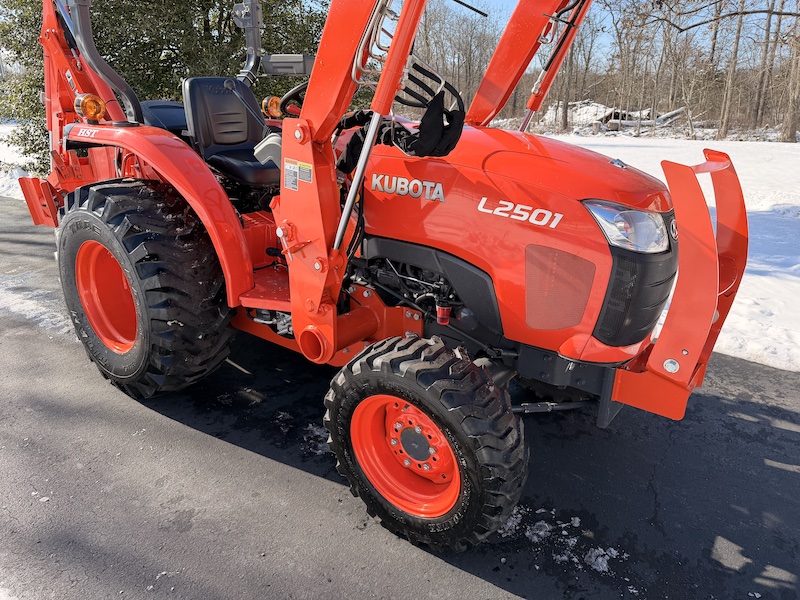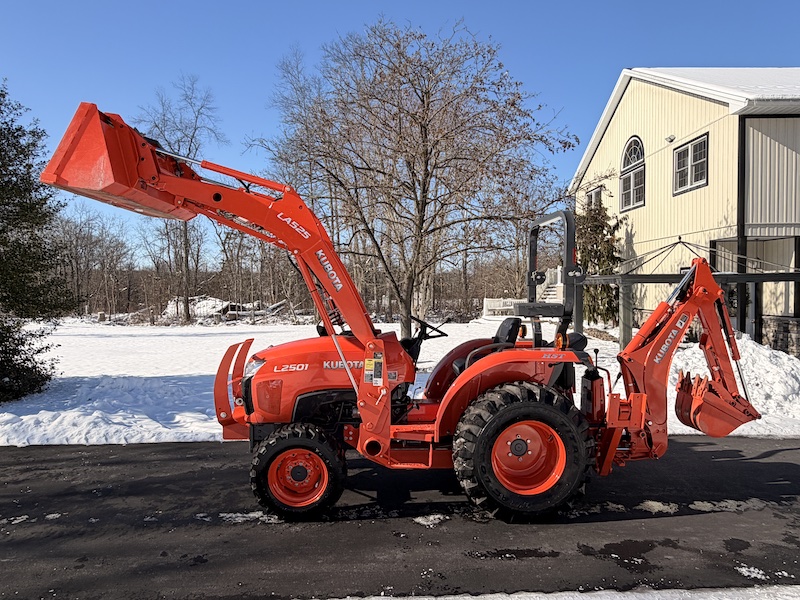 2016 Kubota L2501 Tractor, 24.8 Horsepower 3-Cylinder Diesel Engine, No Emissions, 3-Range Hydrostatic Transmission, 4x4, Rear Differential Lock, R-4 Tires Rear Tires Liquid Filled For Ballast, Cat.1 3-Point Hitch Arms Included, Drawbar, 540 Rear PTO, Power Steering, Folding ROPS