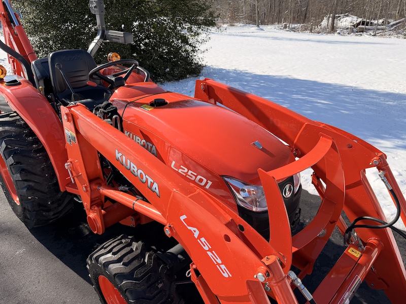 Sharp, one-owner, like new Kubota L2501 TLB package. Everything runs and operates great. No issues, no leaks. All original paint, shines perfectly and was garage kept out of the weather. Perfect size tractor for homeowners with larger properties and bigger jobs to get done. Compare to a new L2502 equipped this way would list for almost $40k. Heres a low hour used machine with thousands in savings over new and still in like new condition.